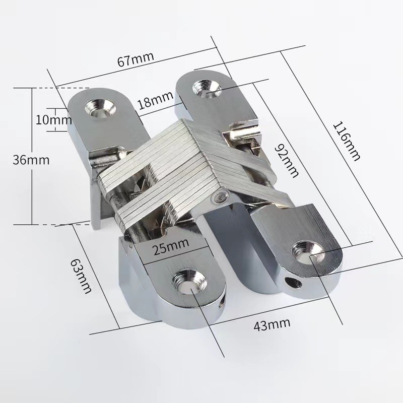Entalhar um encaixe na montagem que a dobradiça invisível é uma obscura entalha um encaixe no dispositivo elétrico projetado se juntar secretamente junto a duas partes de mobília. Isto escondido entalha um encaixe na dobradiça é feito de aço inoxidável e terminado em um cromo lustrado para um olhar lustroso, moderno. Com dois furos e uma capacidade de peso até de 50lbs, é seguro e resistente bastante para qualquer parte da mobília. Este estilo da dobradiça é projetado ser invisível, fazendo lhe uma escolha ideal para aqueles que olham para manter o olhar liso, limpo de sua mobília.